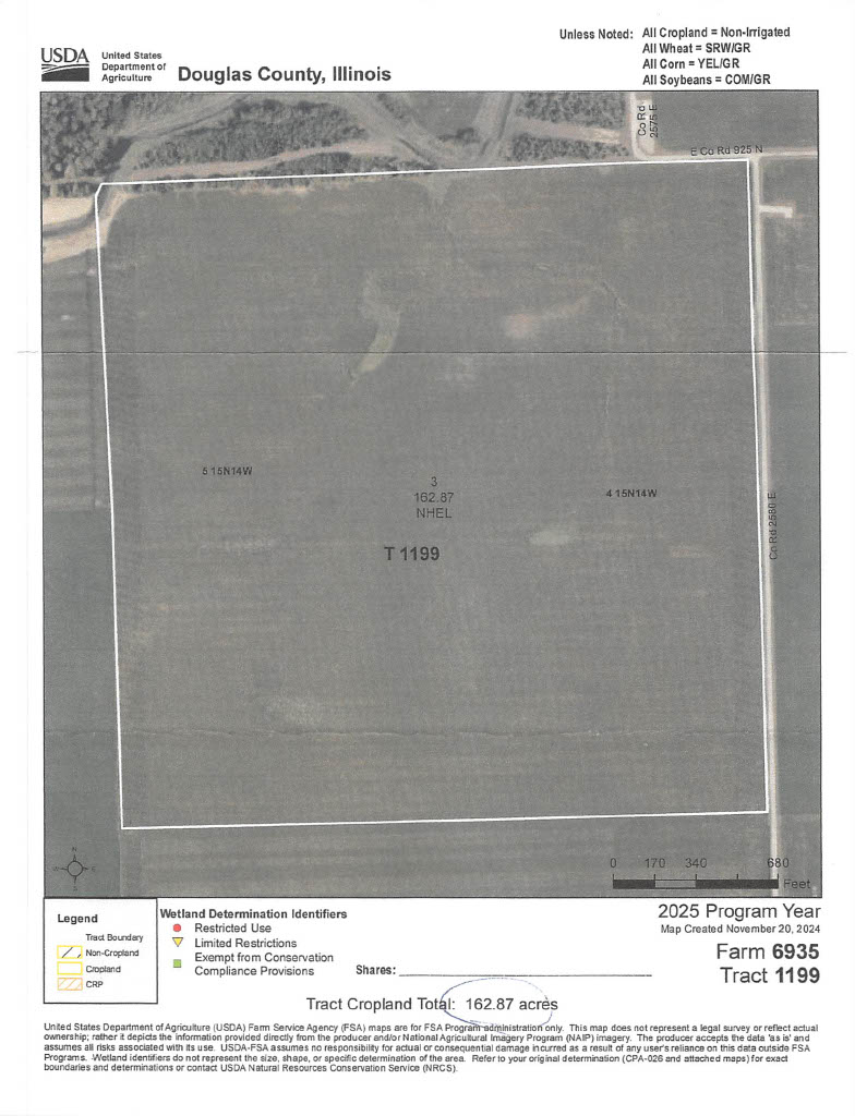 Lease & Possession:  Tenancy is open for the 2026 crop year, possession can be taken after closing.  Seller will retain the Landowner's share of 2025 rents, crop sales, and government proceeds.